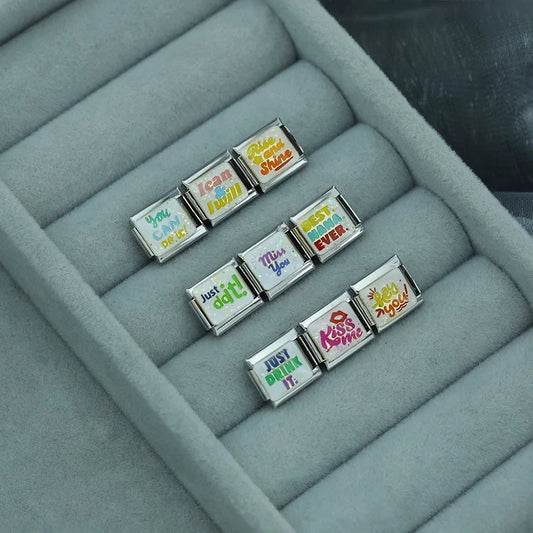 Kiss Me Miss You Letter Charms Italian Links DJ1290