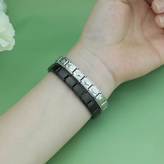 Width Black Itanlian Elastic Charm Bracelet ST-Black