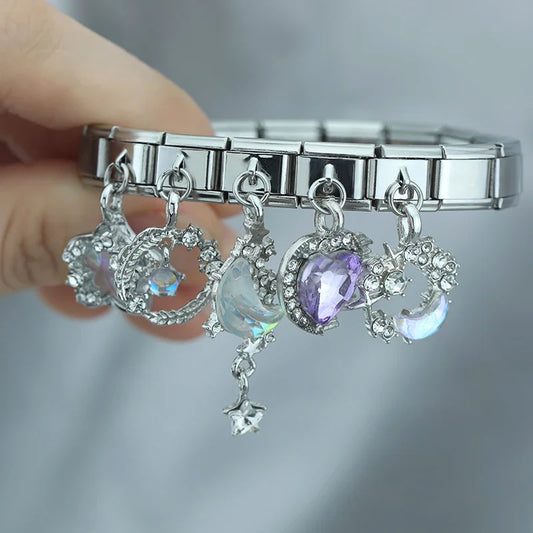 Moon Star Heart Shiny CZ Charms Italian Link DJ1215