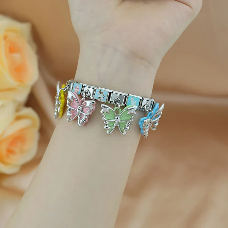Our bracelets are made of 18 Charm links that expand & contract to suite your wrist perfectly. All of our Charms are compatible so you can easily add & remove links as you see fit.