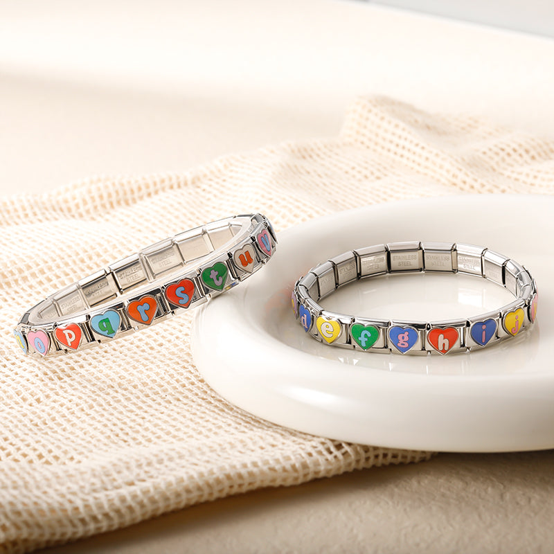 Our bracelets are made of 18 Charm links that expand & contract to suite your wrist perfectly. All of our Charms are compatible so you can easily add & remove links as you see fit.