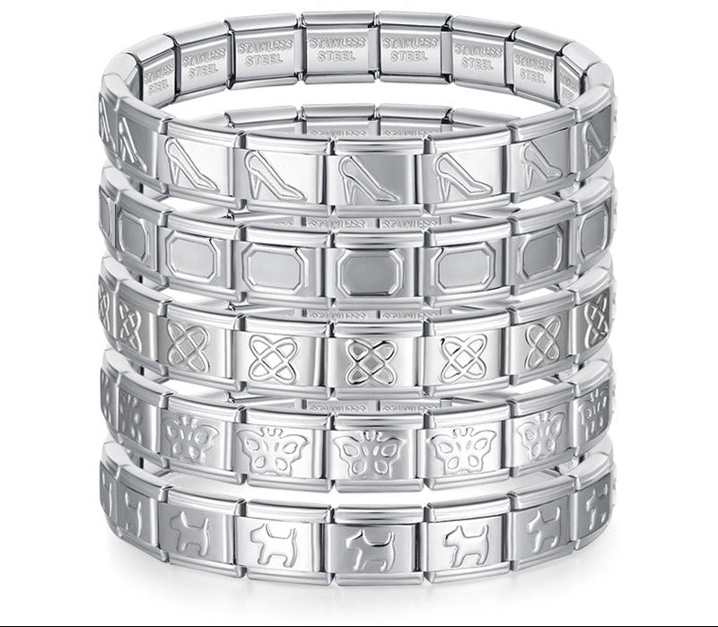 Our bracelets are made of 18 Charm links that expand & contract to suite your wrist perfectly. All of our Charms are compatible so you can easily add & remove links as you see fit.