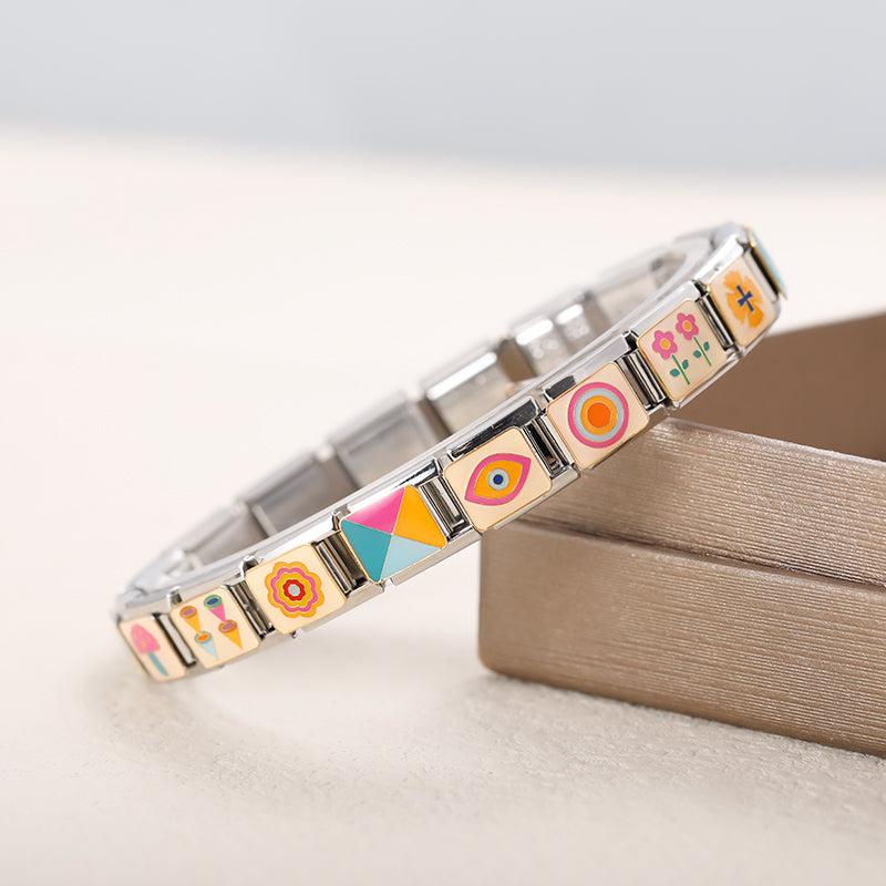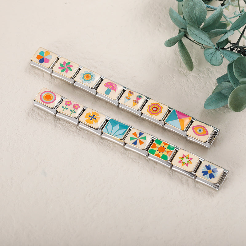 Our bracelets are made of 18 Charm links that expand & contract to suite your wrist perfectly. All of our Charms are compatible so you can easily add & remove links as you see fit.