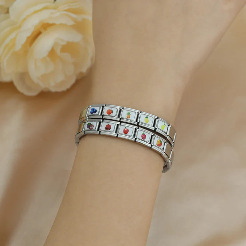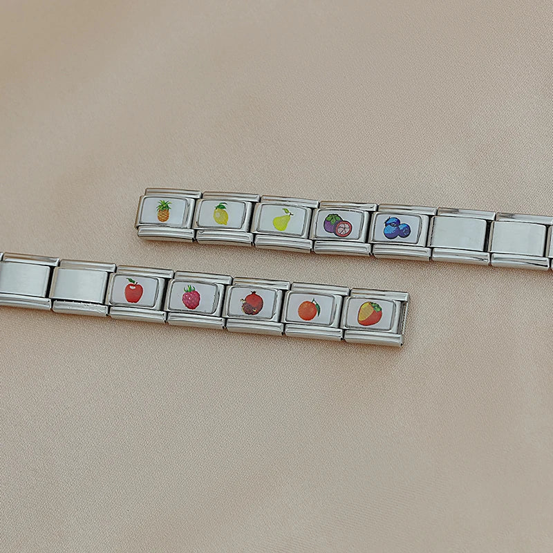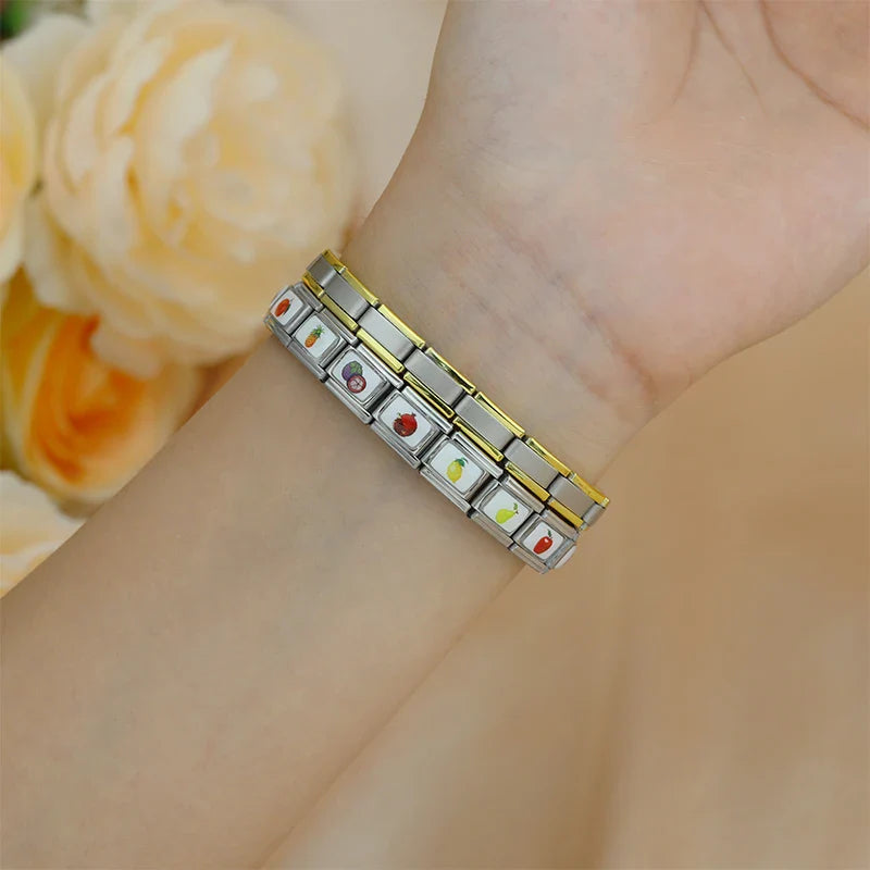 Our bracelets are made of 18 Charm links that expand & contract to suite your wrist perfectly. All of our Charms are compatible so you can easily add & remove links as you see fit.