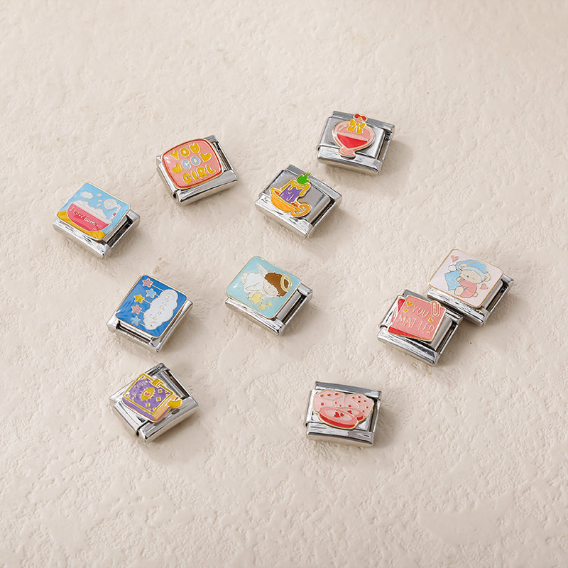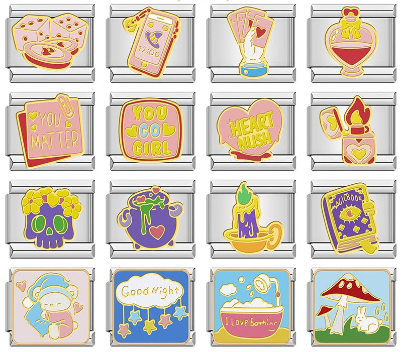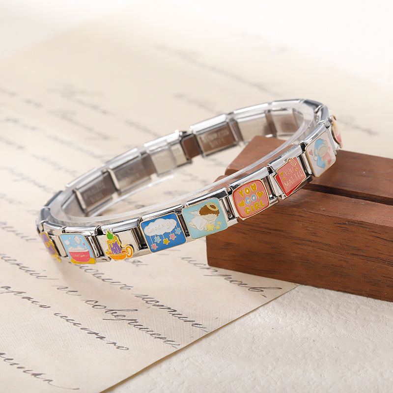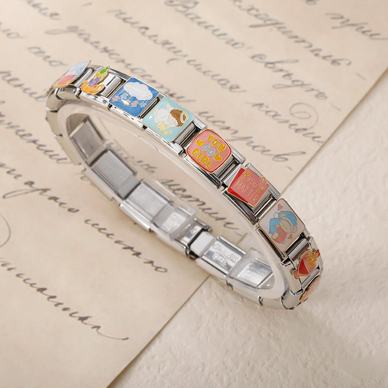 Our bracelets are made of 18 Charm links that expand & contract to suite your wrist perfectly. All of our Charms are compatible so you can easily add & remove links as you see fit.