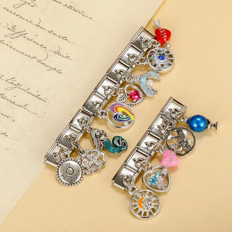 Our bracelets are made of 18 Charm links that expand & contract to suite your wrist perfectly. All of our Charms are compatible so you can easily add & remove links as you see fit.