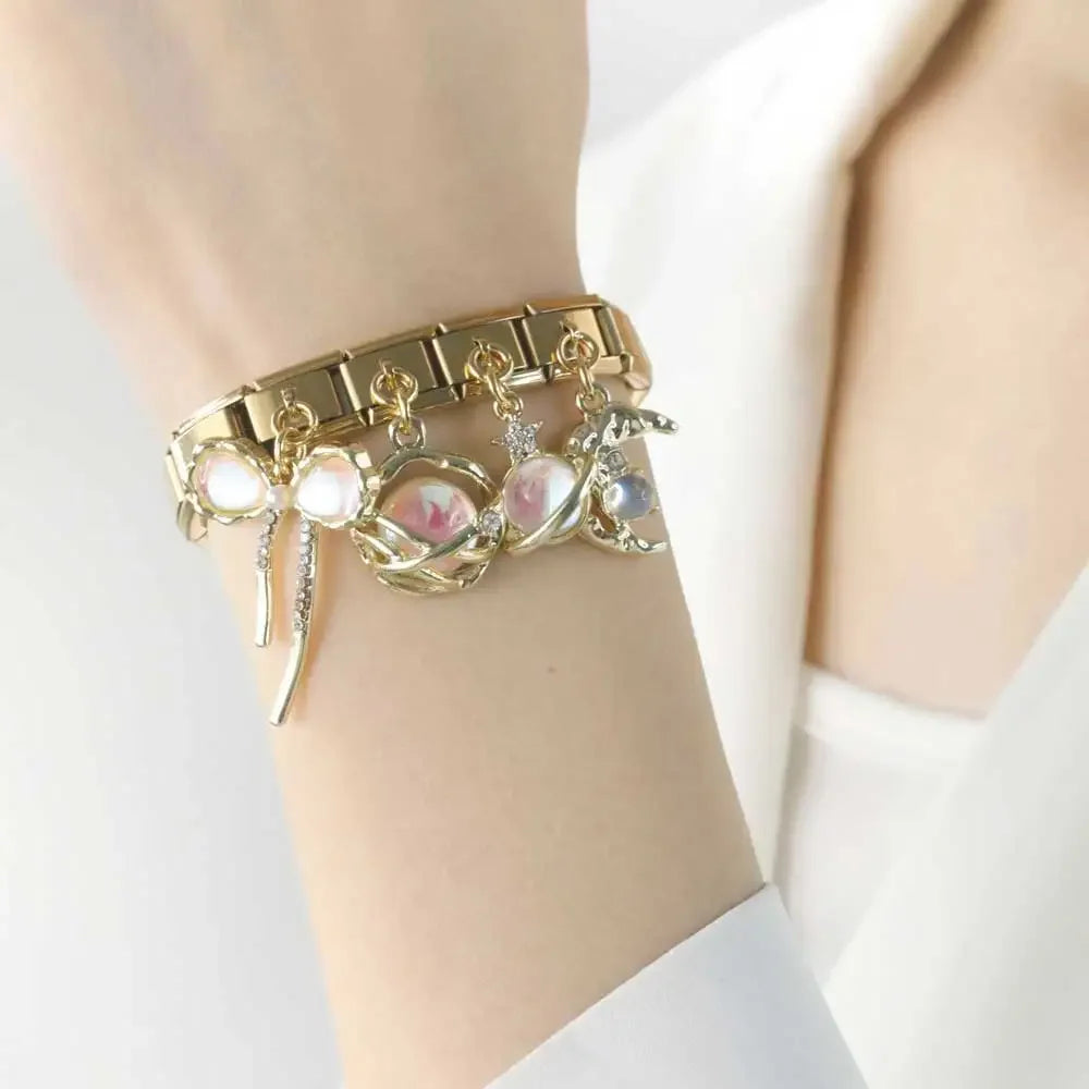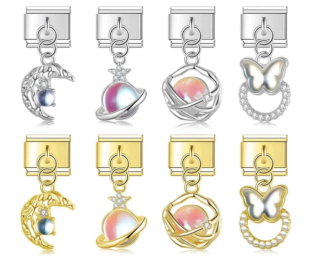 Our bracelets are made of 18 Charm links that expand & contract to suite your wrist perfectly. All of our Charms are compatible so you can easily add & remove links as you see fit.