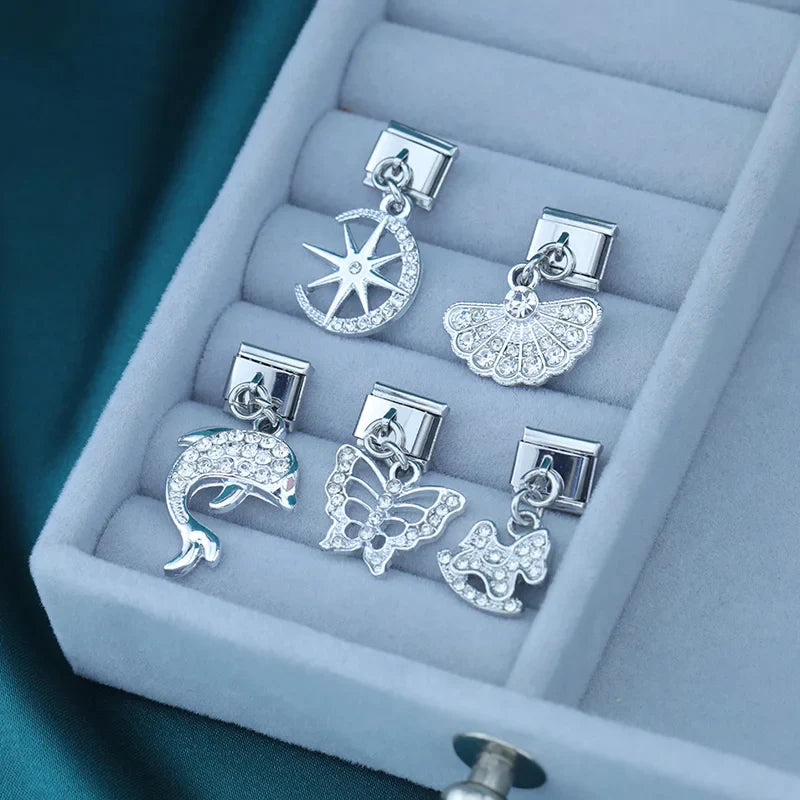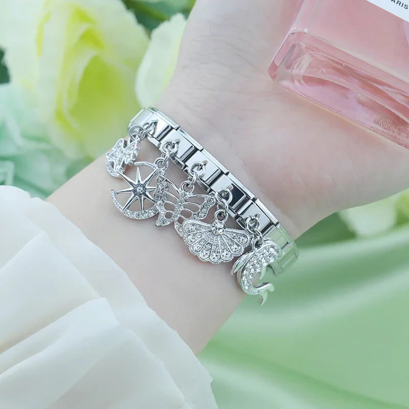 Our bracelets are made of 18 Charm links that expand & contract to suite your wrist perfectly. All of our Charms are compatible so you can easily add & remove links as you see fit.