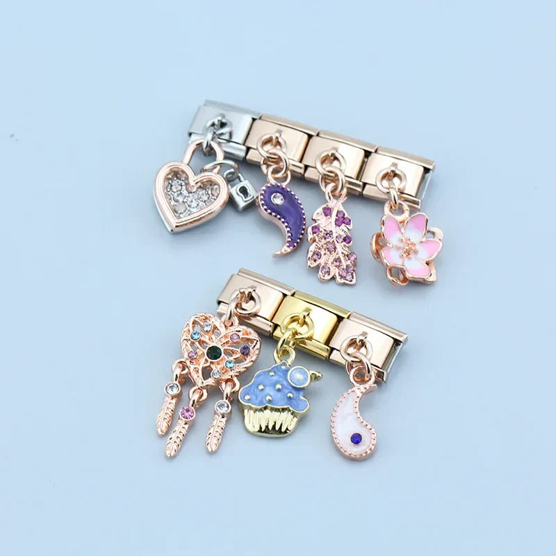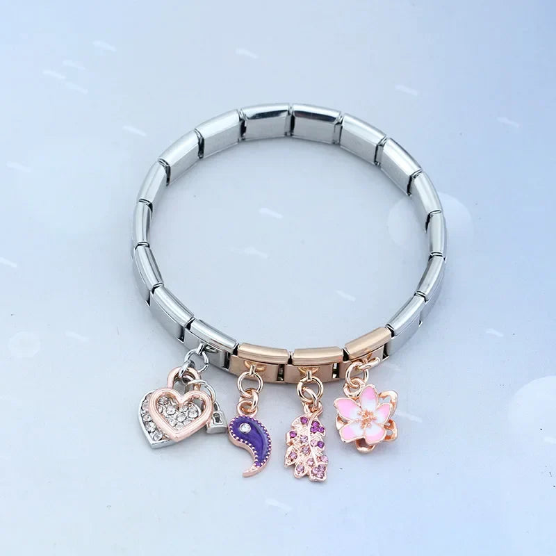 Our bracelets are made of 18 Charm links that expand & contract to suite your wrist perfectly. All of our Charms are compatible so you can easily add & remove links as you see fit.