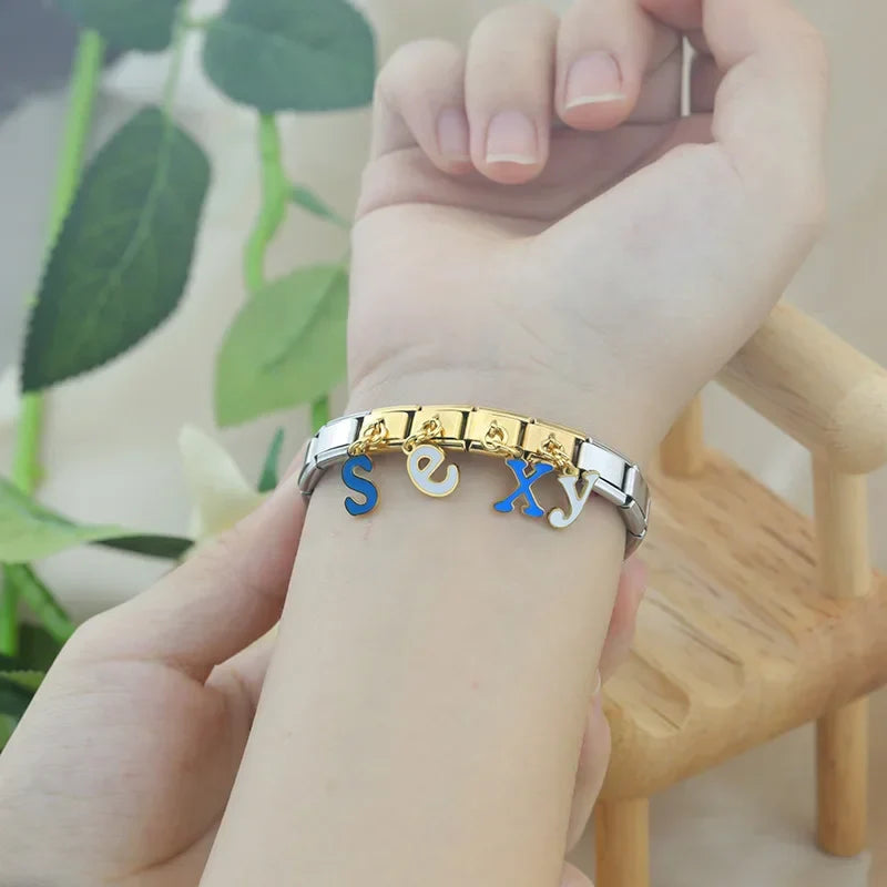 Our bracelets are made of 18 Charm links that expand & contract to suite your wrist perfectly. All of our Charms are compatible so you can easily add & remove links as you see fit.