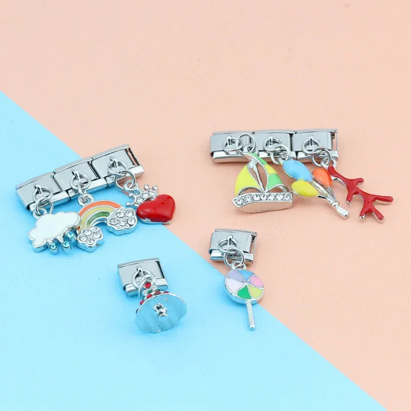 Our bracelets are made of 18 Charm links that expand & contract to suite your wrist perfectly. All of our Charms are compatible so you can easily add & remove links as you see fit.