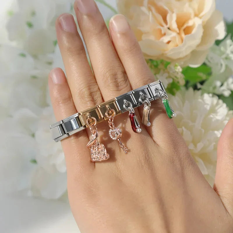 Our bracelets are made of 18 Charm links that expand & contract to suite your wrist perfectly. All of our Charms are compatible so you can easily add & remove links as you see fit.