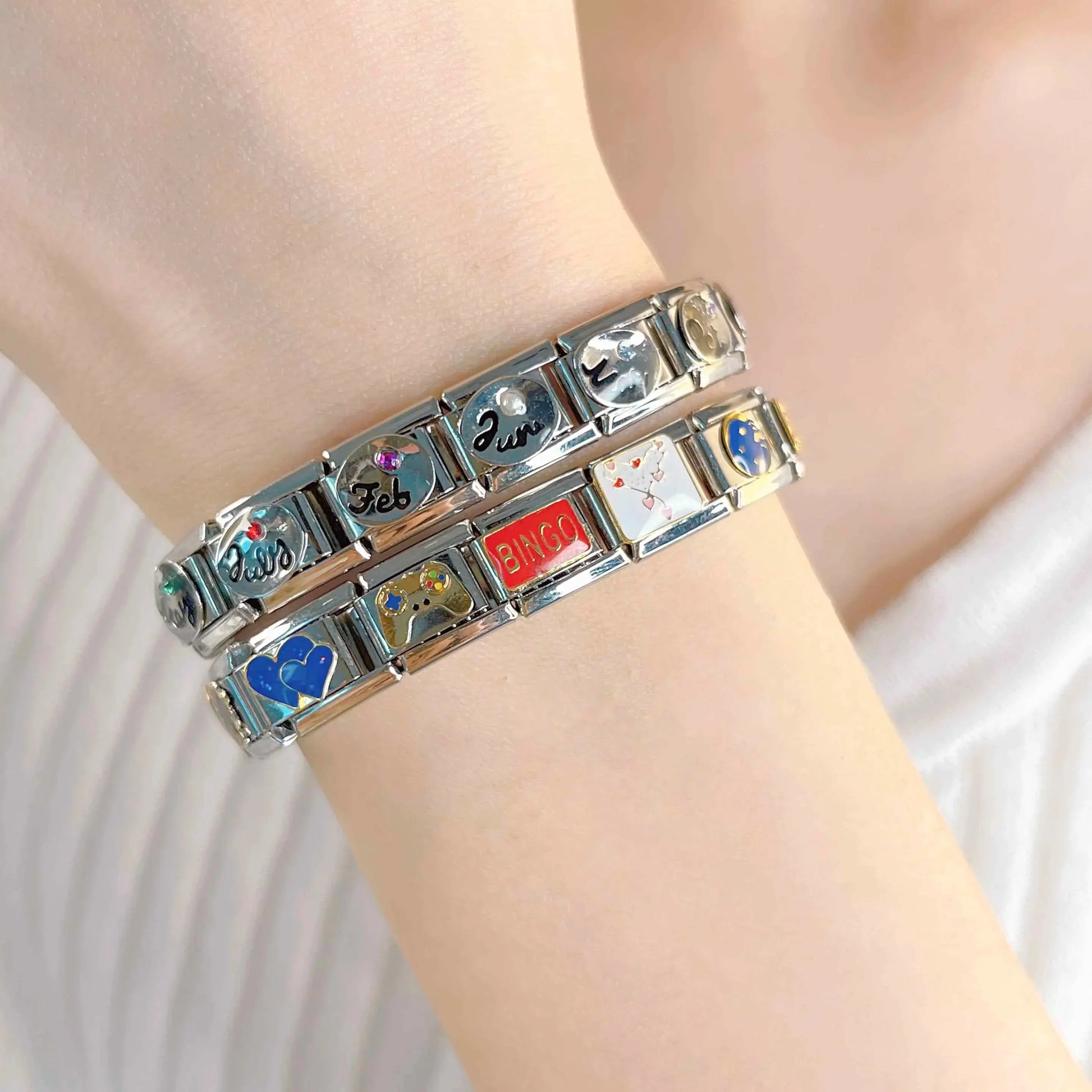 Our bracelets are made of 18 Charm links that expand & contract to suite your wrist perfectly. All of our Charms are compatible so you can easily add & remove links as you see fit.