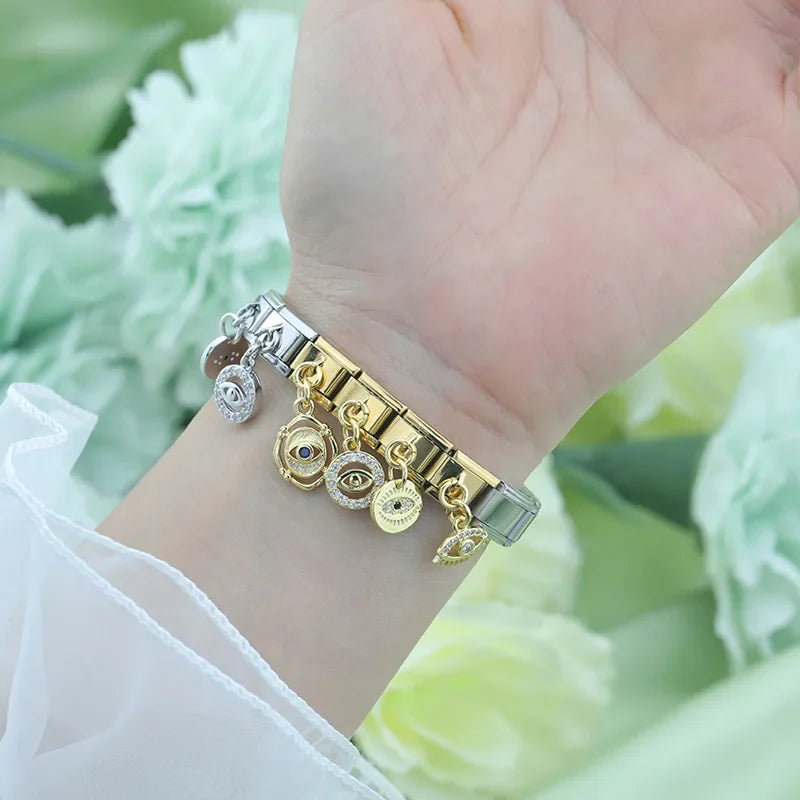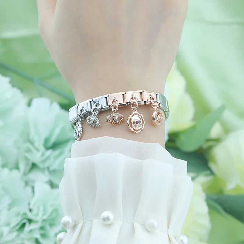 Our bracelets are made of 18 Charm links that expand & contract to suite your wrist perfectly. All of our Charms are compatible so you can easily add & remove links as you see fit.