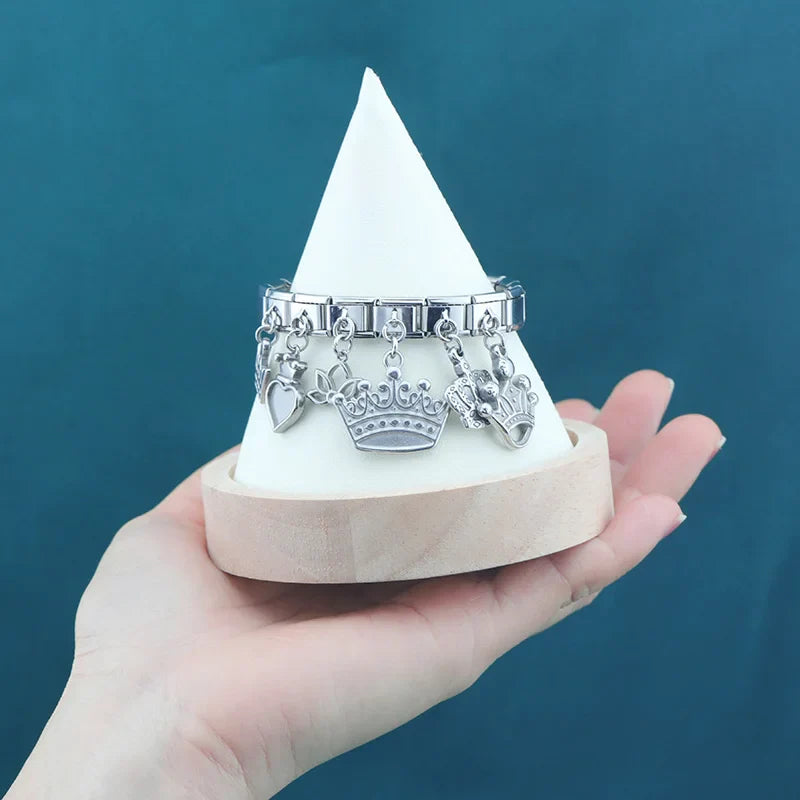 Our bracelets are made of 18 Charm links that expand & contract to suite your wrist perfectly. All of our Charms are compatible so you can easily add & remove links as you see fit.