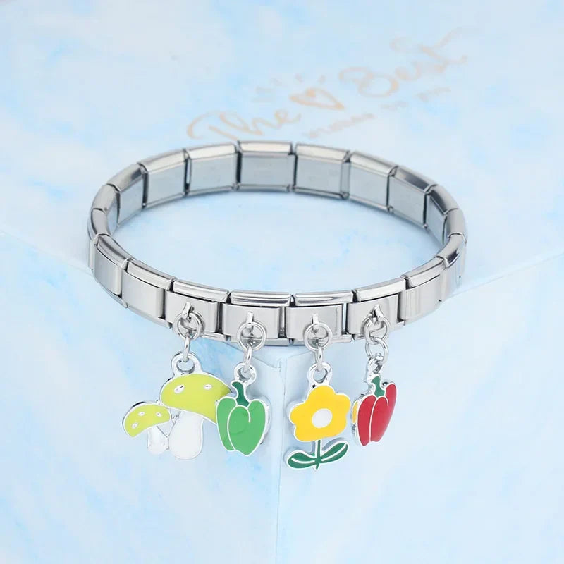 Our bracelets are made of 18 Charm links that expand & contract to suite your wrist perfectly. All of our Charms are compatible so you can easily add & remove links as you see fit.