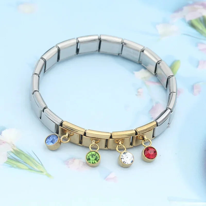 Our bracelets are made of 18 Charm links that expand & contract to suite your wrist perfectly. All of our Charms are compatible so you can easily add & remove links as you see fit.