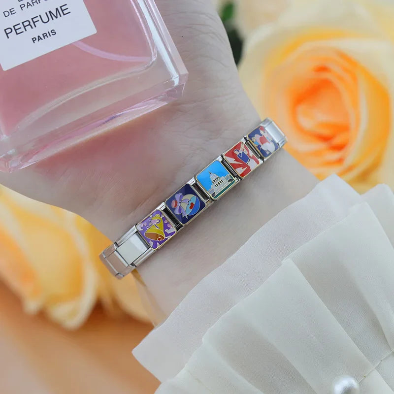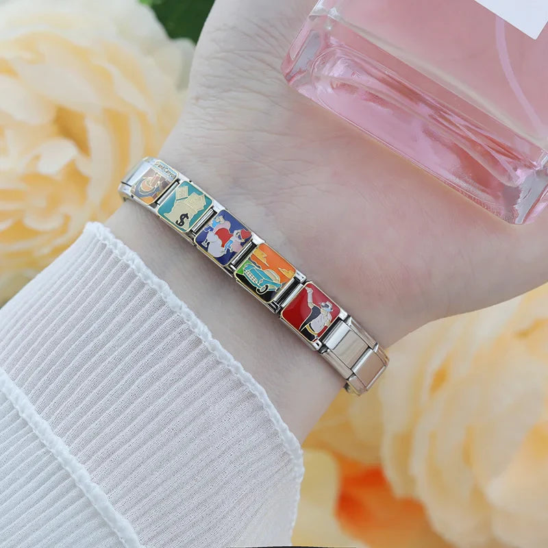 Our bracelets are made of 18 Charm links that expand & contract to suite your wrist perfectly. All of our Charms are compatible so you can easily add & remove links as you see fit.