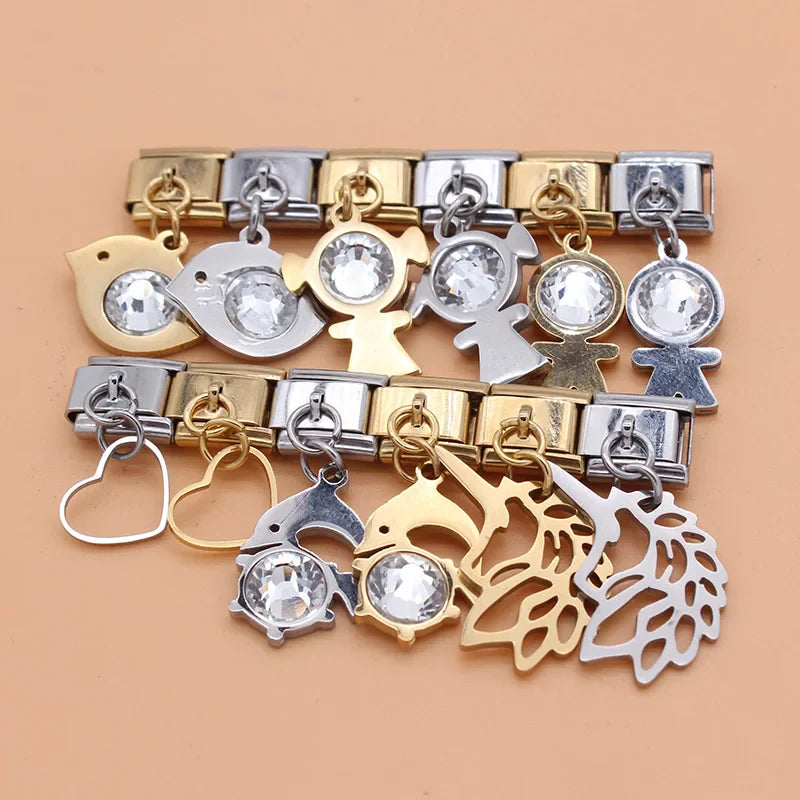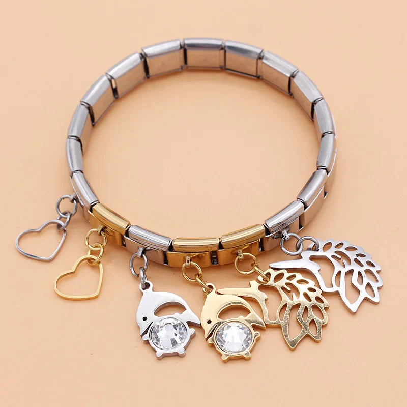 Our bracelets are made of 18 Charm links that expand & contract to suite your wrist perfectly. All of our Charms are compatible so you can easily add & remove links as you see fit.