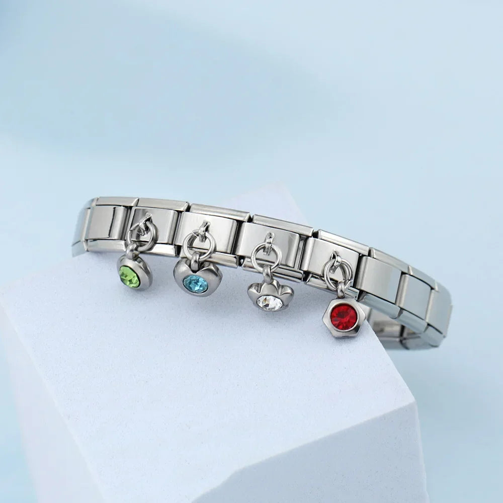 Our bracelets are made of 18 Charm links that expand & contract to suite your wrist perfectly. All of our Charms are compatible so you can easily add & remove links as you see fit.