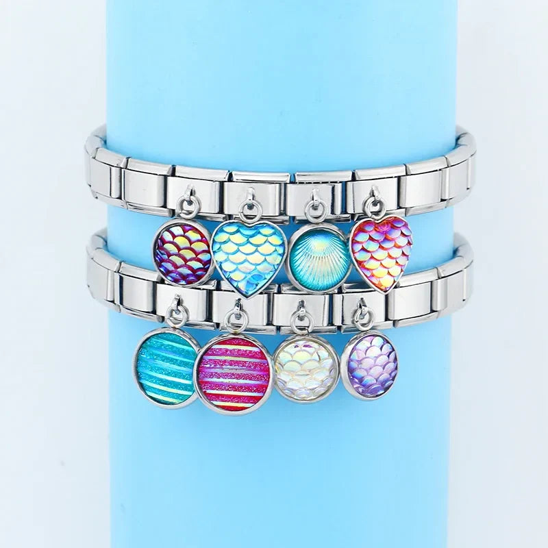 Our bracelets are made of 18 Charm links that expand & contract to suite your wrist perfectly. All of our Charms are compatible so you can easily add & remove links as you see fit.
