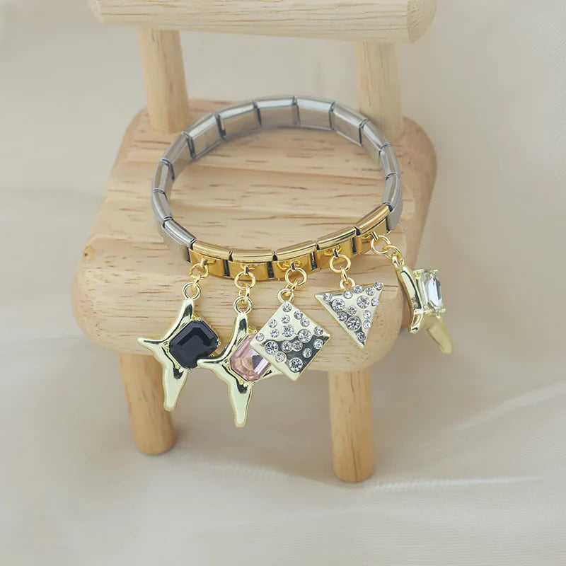 Our bracelets are made of 18 Charm links that expand & contract to suite your wrist perfectly. All of our Charms are compatible so you can easily add & remove links as you see fit.