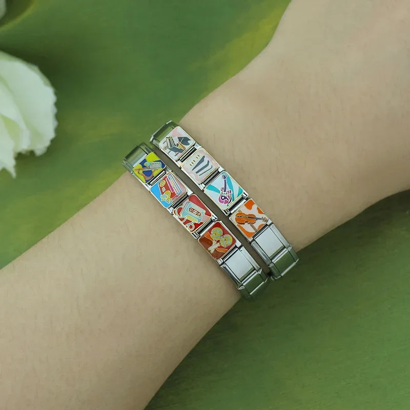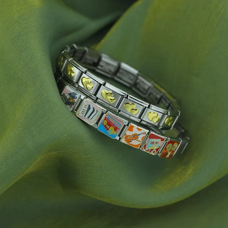 Our bracelets are made of 18 Charm links that expand & contract to suite your wrist perfectly. All of our Charms are compatible so you can easily add & remove links as you see fit.