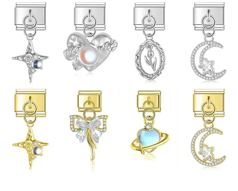 Our bracelets are made of 18 Charm links that expand & contract to suite your wrist perfectly. All of our Charms are compatible so you can easily add & remove links as you see fit.
