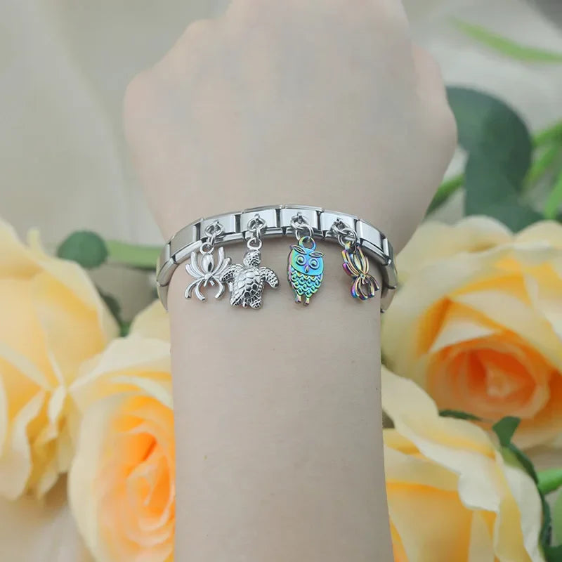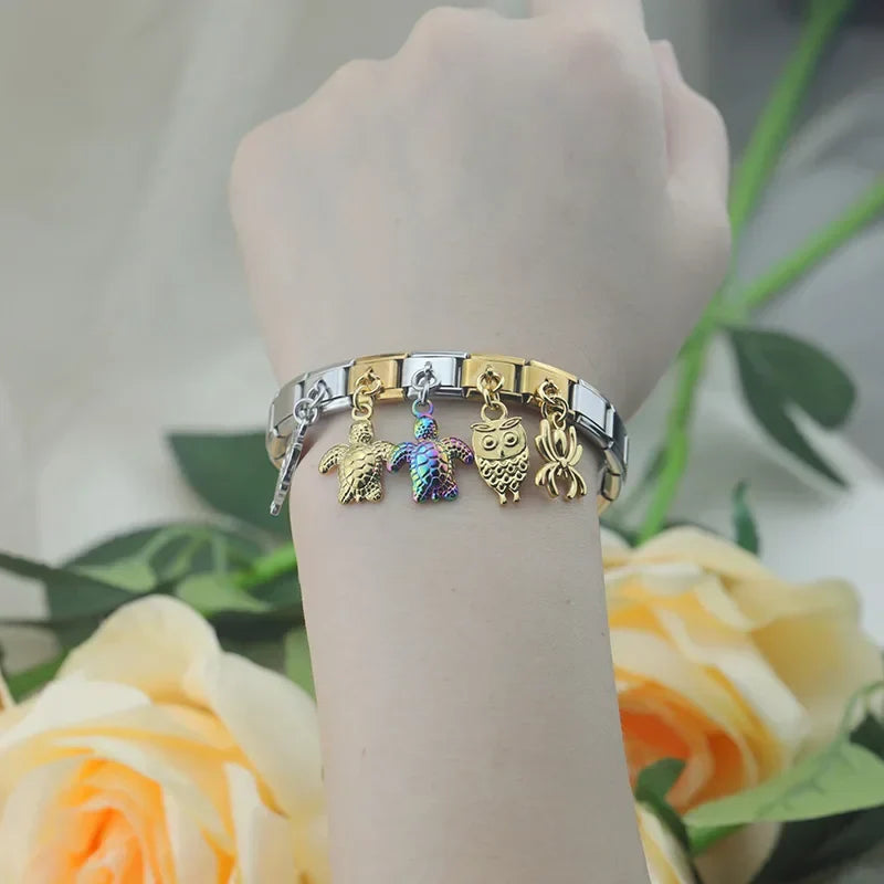 Our bracelets are made of 18 Charm links that expand & contract to suite your wrist perfectly. All of our Charms are compatible so you can easily add & remove links as you see fit.