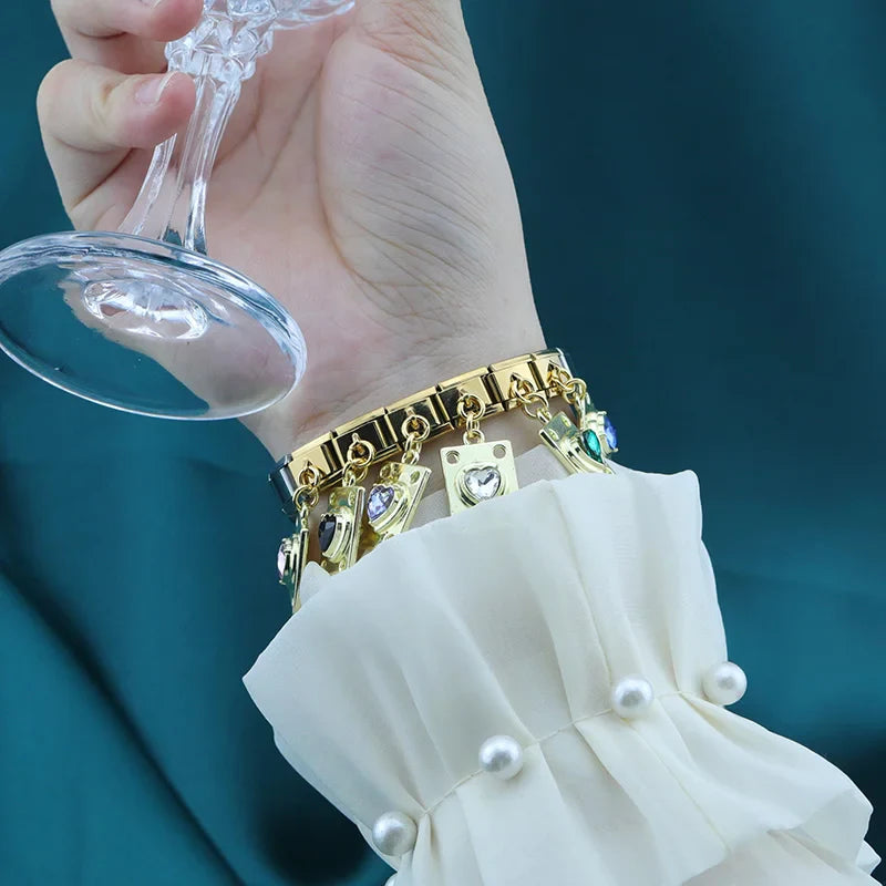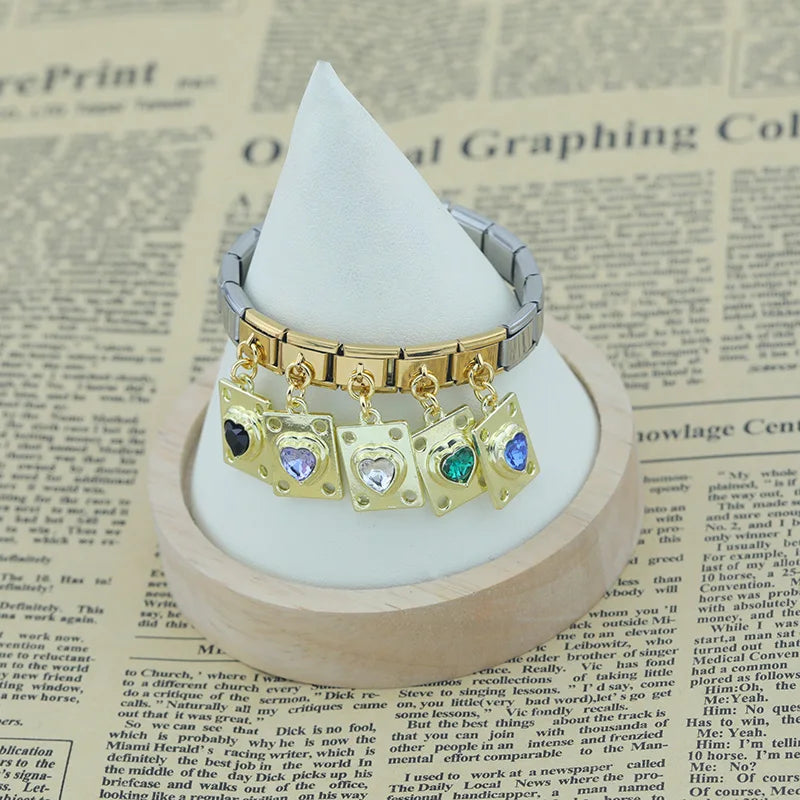 Our bracelets are made of 18 Charm links that expand & contract to suite your wrist perfectly. All of our Charms are compatible so you can easily add & remove links as you see fit.