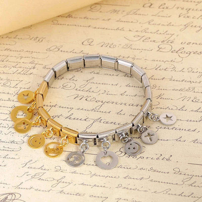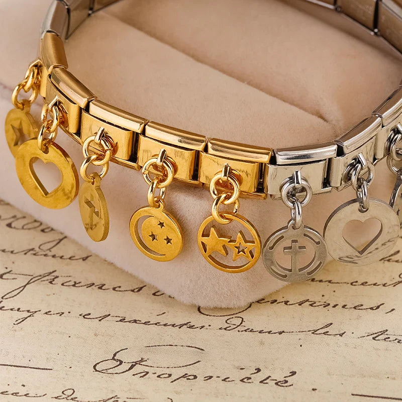 Our bracelets are made of 18 Charm links that expand & contract to suite your wrist perfectly. All of our Charms are compatible so you can easily add & remove links as you see fit.
