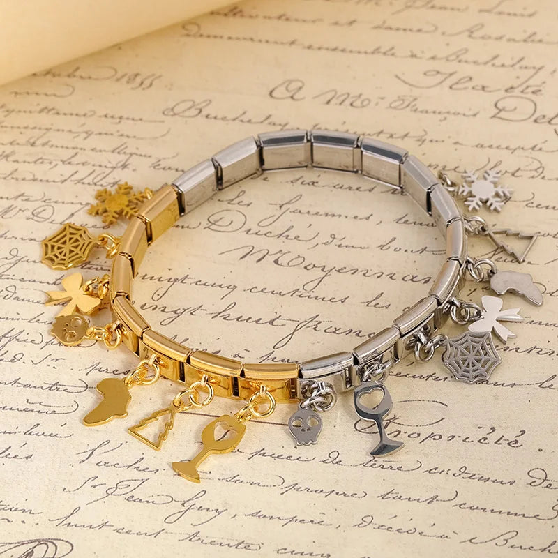 Our bracelets are made of 18 Charm links that expand & contract to suite your wrist perfectly. All of our Charms are compatible so you can easily add & remove links as you see fit.