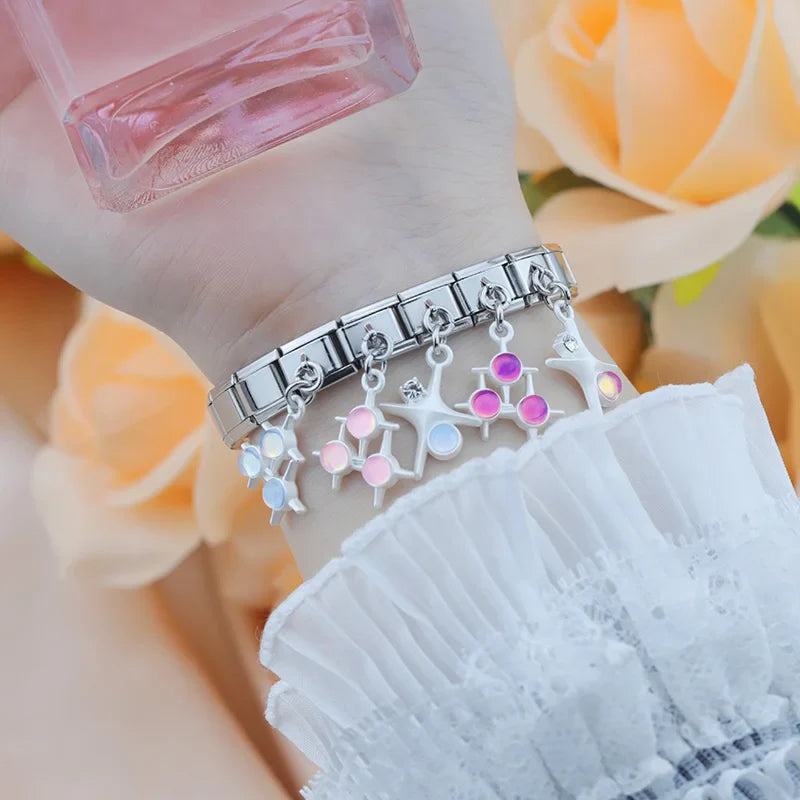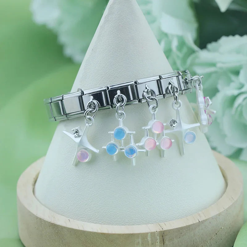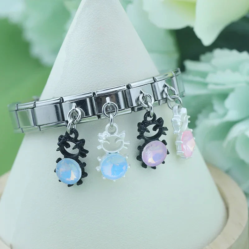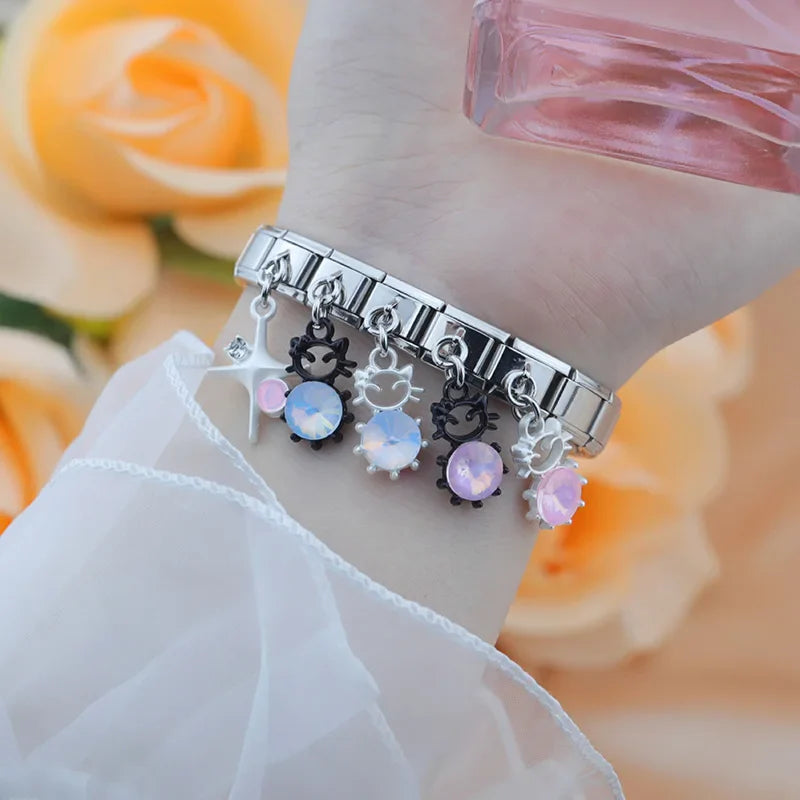 Our bracelets are made of 18 Charm links that expand & contract to suite your wrist perfectly. All of our Charms are compatible so you can easily add & remove links as you see fit.