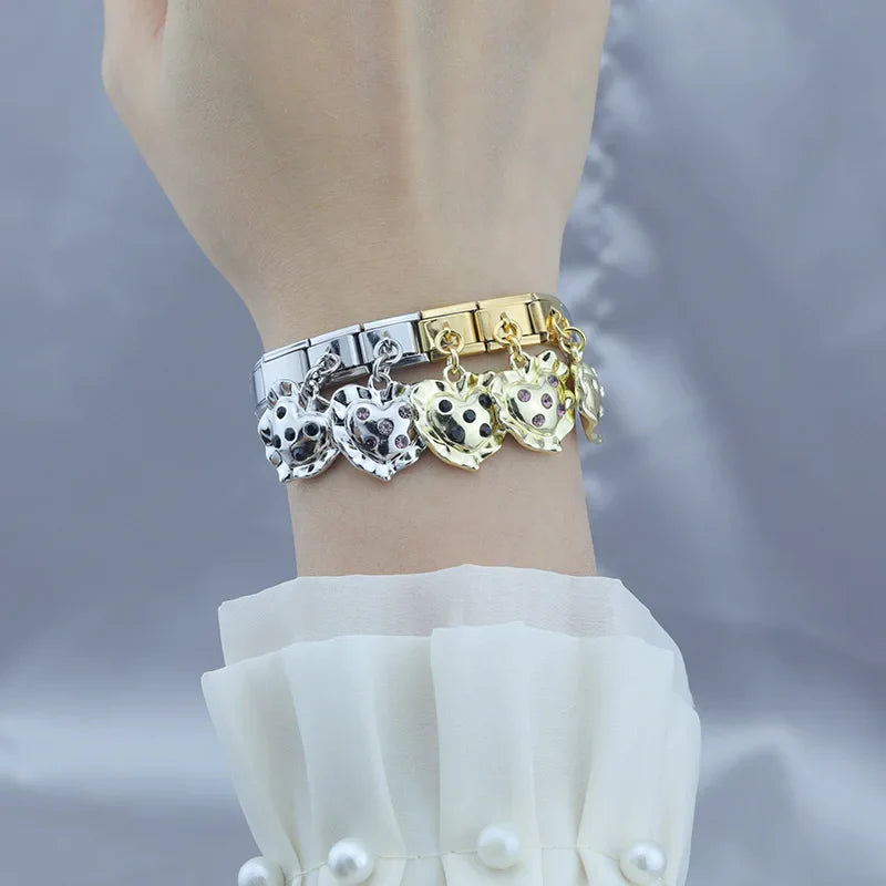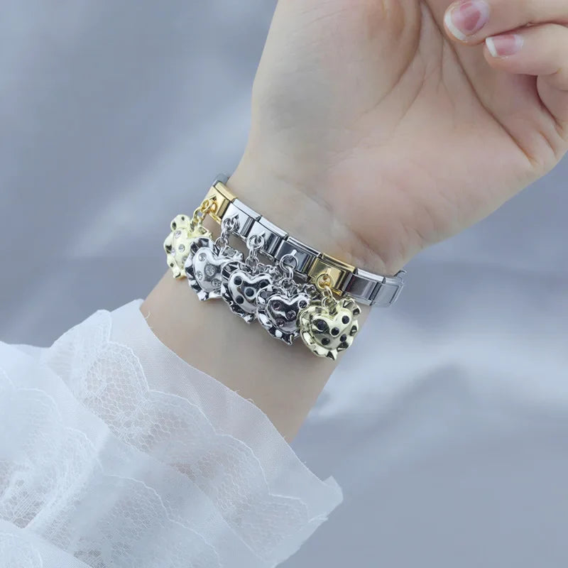 Our bracelets are made of 18 Charm links that expand & contract to suite your wrist perfectly. All of our Charms are compatible so you can easily add & remove links as you see fit.