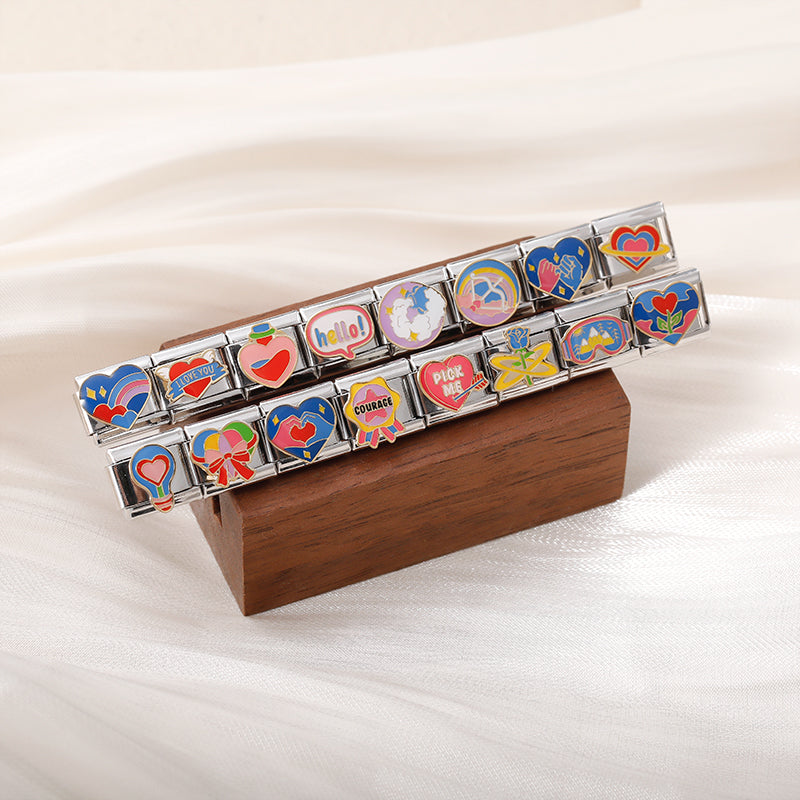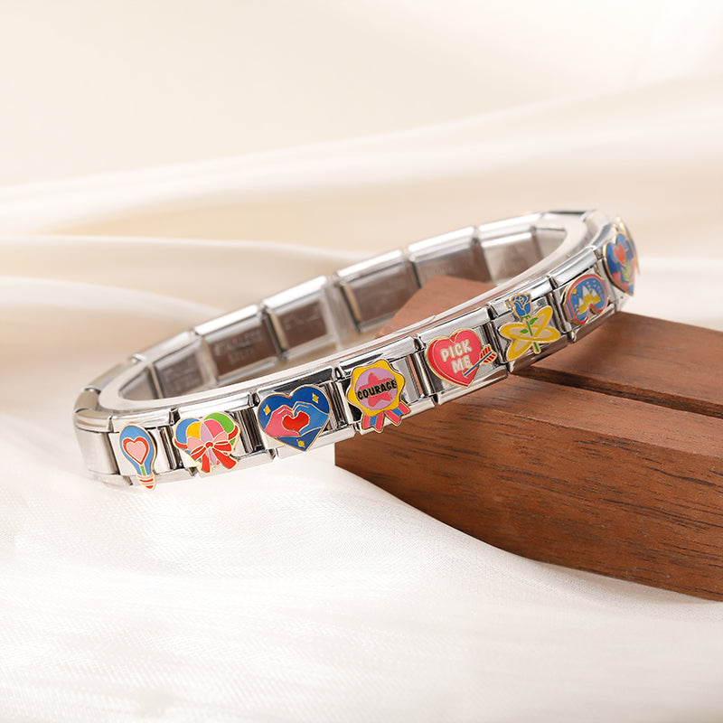 Our bracelets are made of 18 Charm links that expand & contract to suite your wrist perfectly. All of our Charms are compatible so you can easily add & remove links as you see fit.