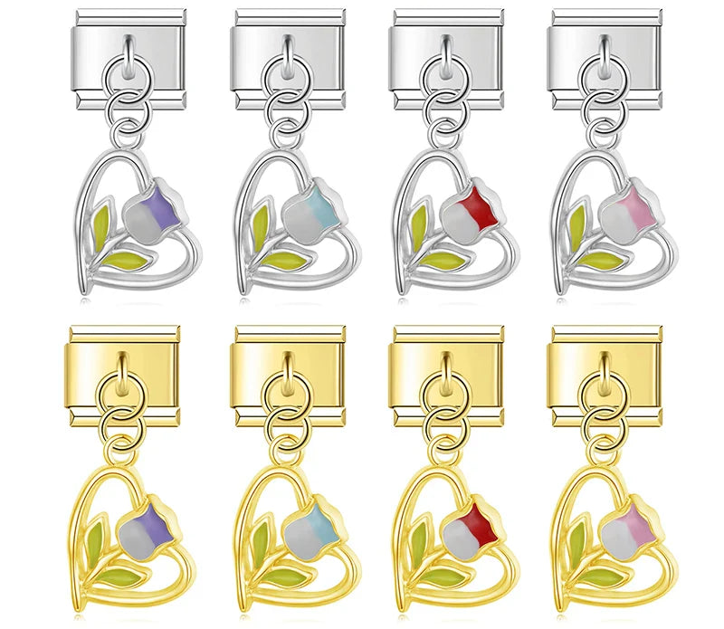 Our bracelets are made of 18 Charm links that expand & contract to suite your wrist perfectly. All of our Charms are compatible so you can easily add & remove links as you see fit.