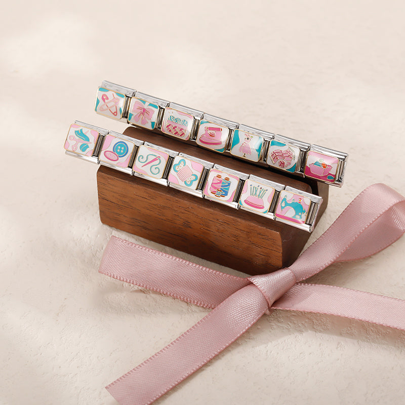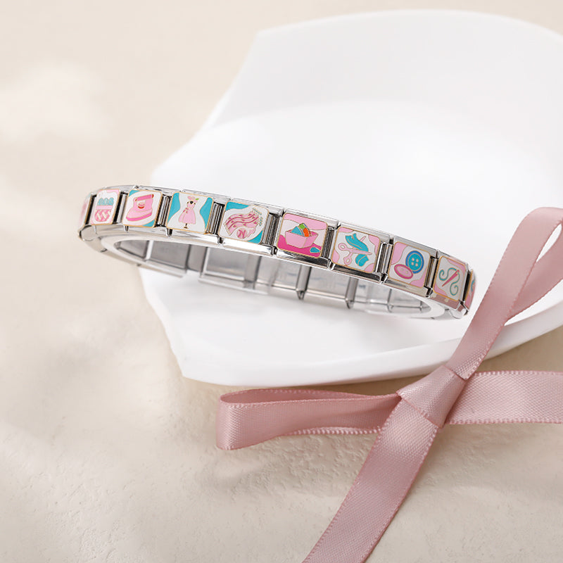 Our bracelets are made of 18 Charm links that expand & contract to suite your wrist perfectly. All of our Charms are compatible so you can easily add & remove links as you see fit.