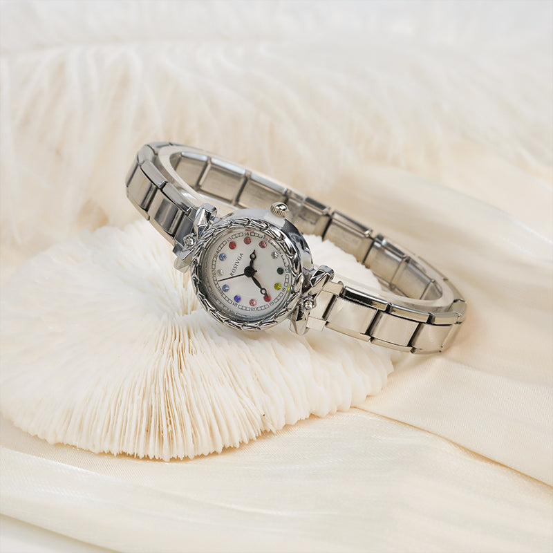 Our bracelets are made of 18 Charm links that expand & contract to suite your wrist perfectly. All of our Charms are compatible so you can easily add & remove links as you see fit.