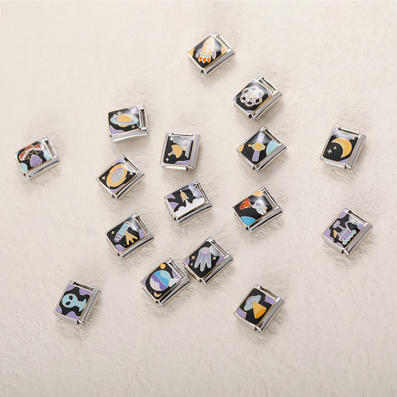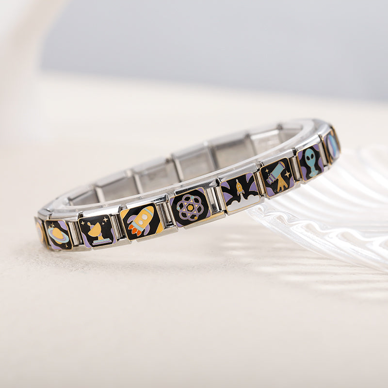 Our bracelets are made of 18 Charm links that expand & contract to suite your wrist perfectly. All of our Charms are compatible so you can easily add & remove links as you see fit.