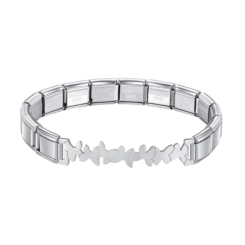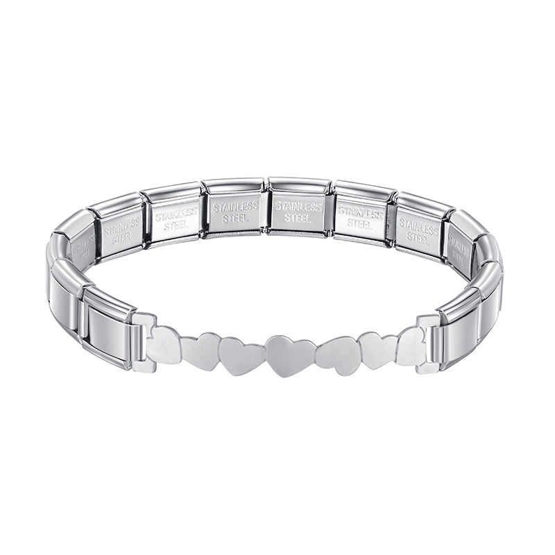 Our bracelets are made of 18 Charm links that expand & contract to suite your wrist perfectly. All of our Charms are compatible so you can easily add & remove links as you see fit.