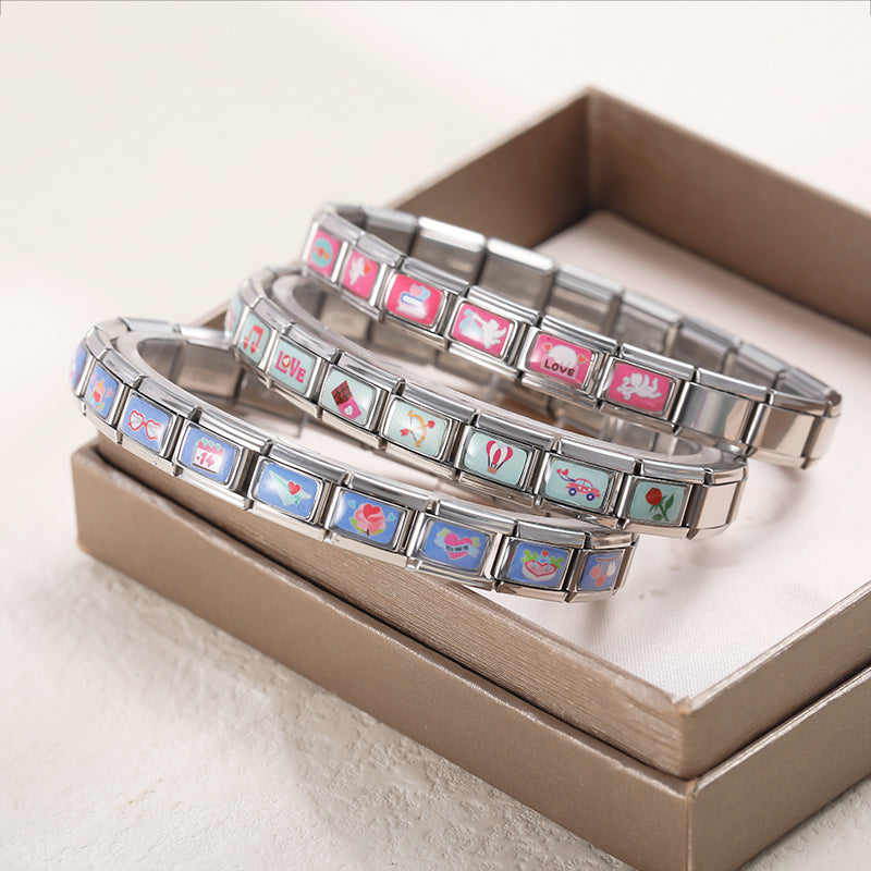 Our bracelets are made of 18 Charm links that expand & contract to suite your wrist perfectly. All of our Charms are compatible so you can easily add & remove links as you see fit.